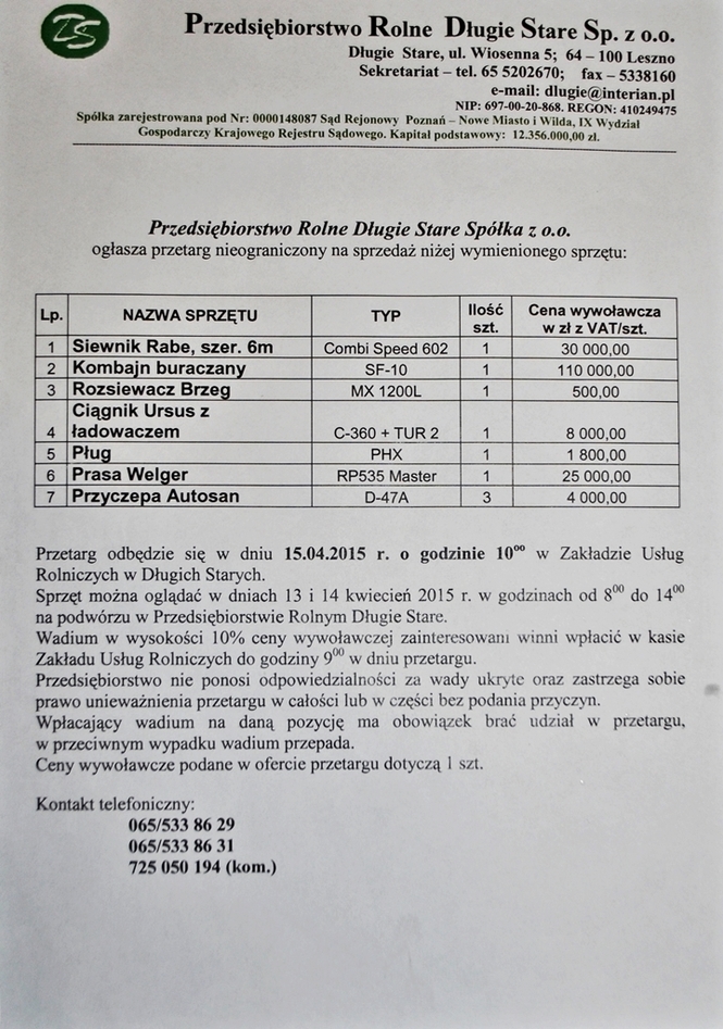 PRZEDSIĘBIORSTWO ROLNE DŁUGIE STARE SP. Z O.O.